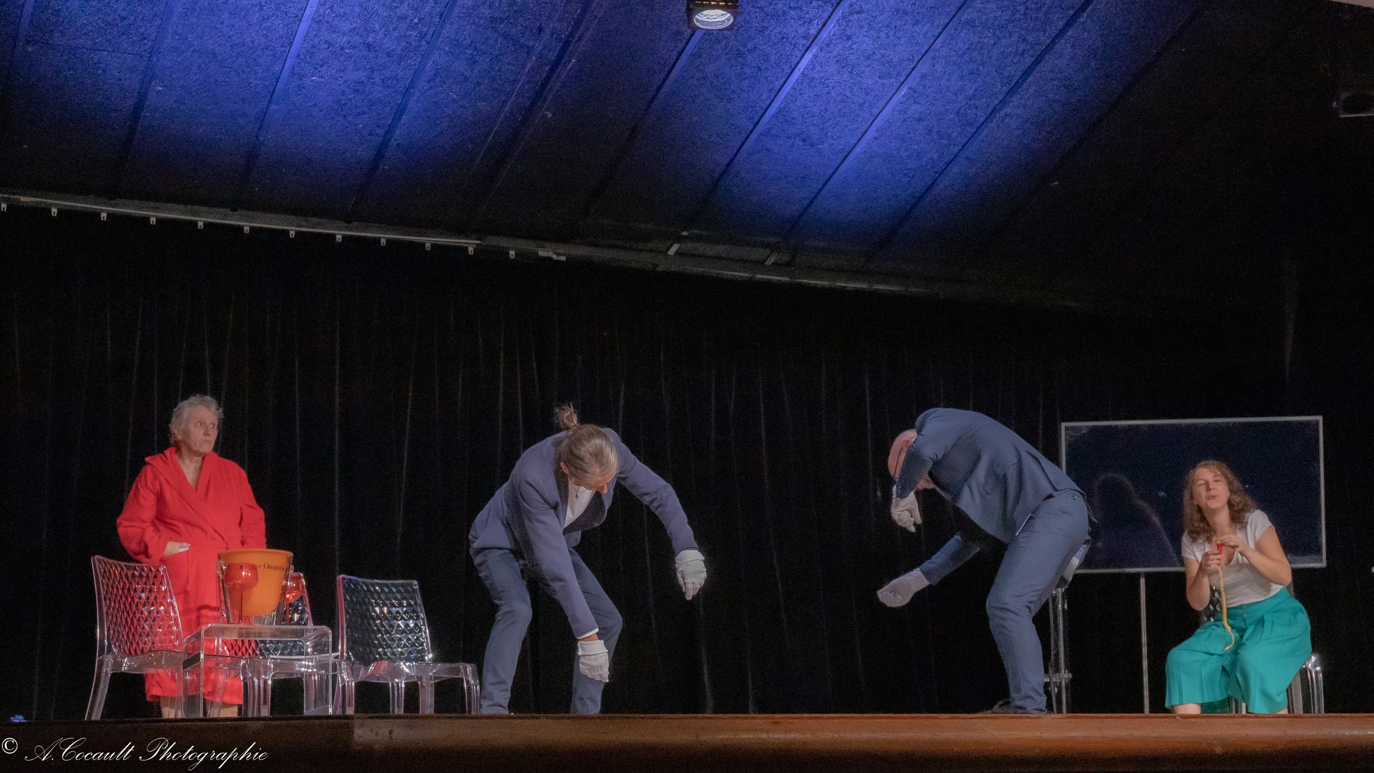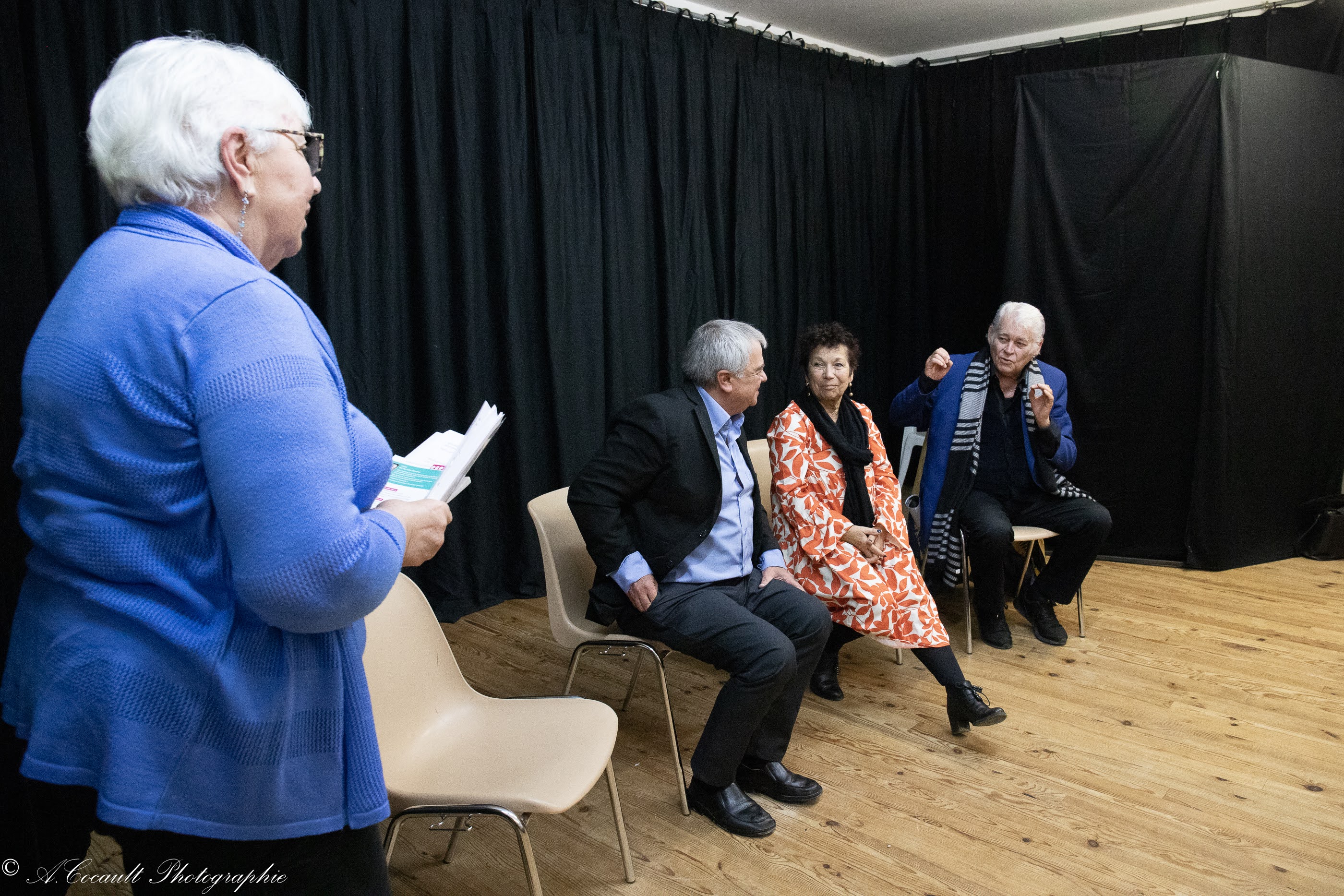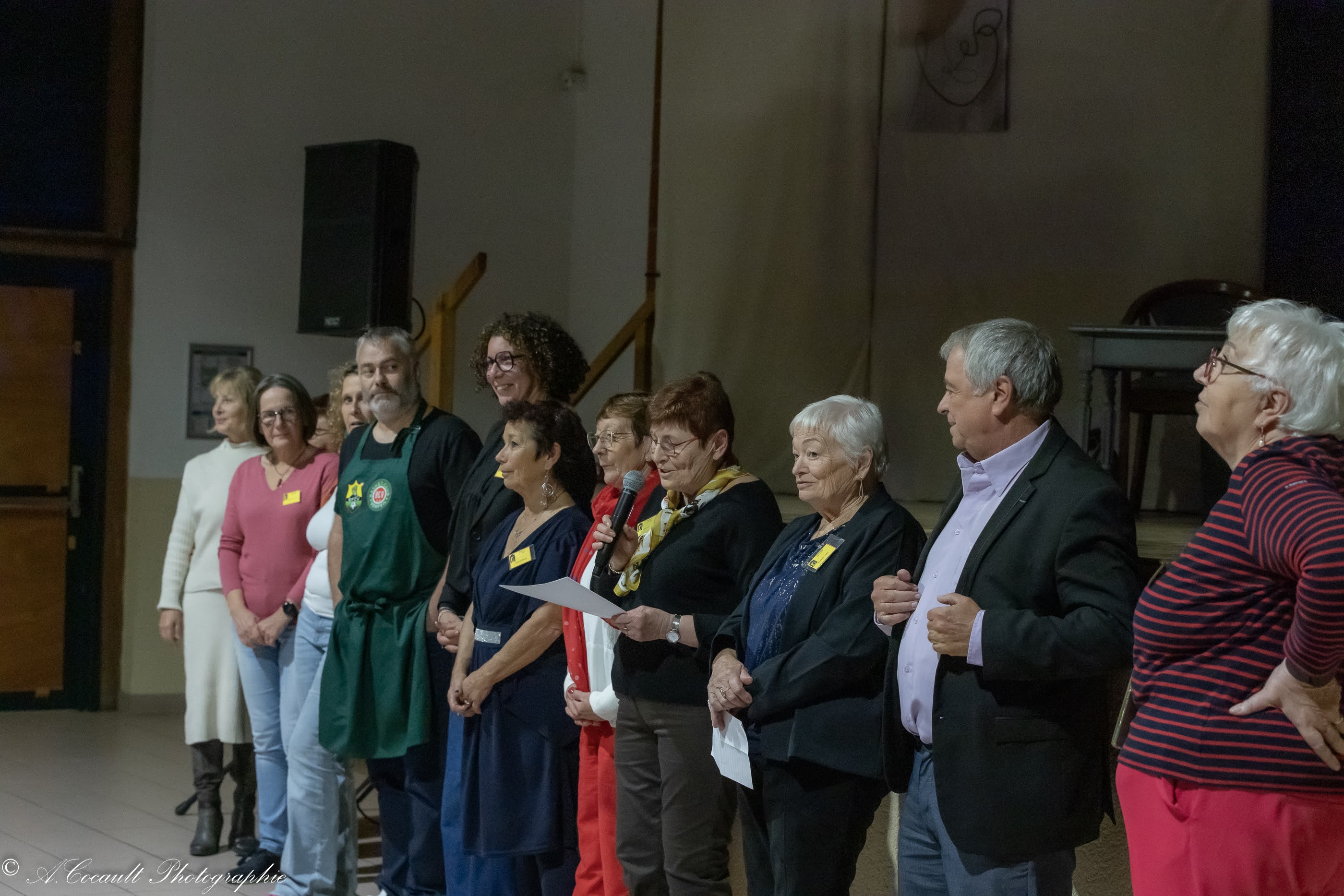 L’ouverture avait eu lieu le vendredi 7 novembre lors d’un apéritif dinatoire assorti de 2 intermèdes théâtraux et encadré par deux spectacles : « Recrash ta joie », un spectacle musical sur des textes d’auteurs et « Times Square » de la compagnie Clémentine. Déjà l’affluence record lors de cette soirée laissait augurer de la réussite du festival. Un festival gagnant grâce à une programmation de qualité, 150 comédiens, régisseurs et metteurs en scène et qui a attiré 1700 spectateurs, plus qu’en 2024. 5 jours intenses, 24 spectacles très variés dans les 2 salles d’En Solomiac et dans la salle des fêtes de Saint Pierre, des spectacles pour tous y compris le jeune public, du rire, de l’émotion, des surprises, de l’indignation, de la réflexion… Des spectacles primés dans plusieurs endroits dont « Le colonel Oiseau » tour d’argent à FESTHEA la semaine précédente, « Fausse note » primé plusieurs fois, des spectacles originaux : « Les passagers du petit jardin », une histoire sans paroles de la Compagnie normande « Scènes en boucle », des spectacles qui interpellent : » le circuit ordinaire » « L’installation de la peur », du burlesque : « L’Odyssée », » Inventaires » …Difficile de les citer tous ! Et tout cela agrémenté d’intermèdes par l’atelier théâtre de Mauvezin, de lectures de textes par des comédiens de la FNCTA et le groupe DIRELIRE.
