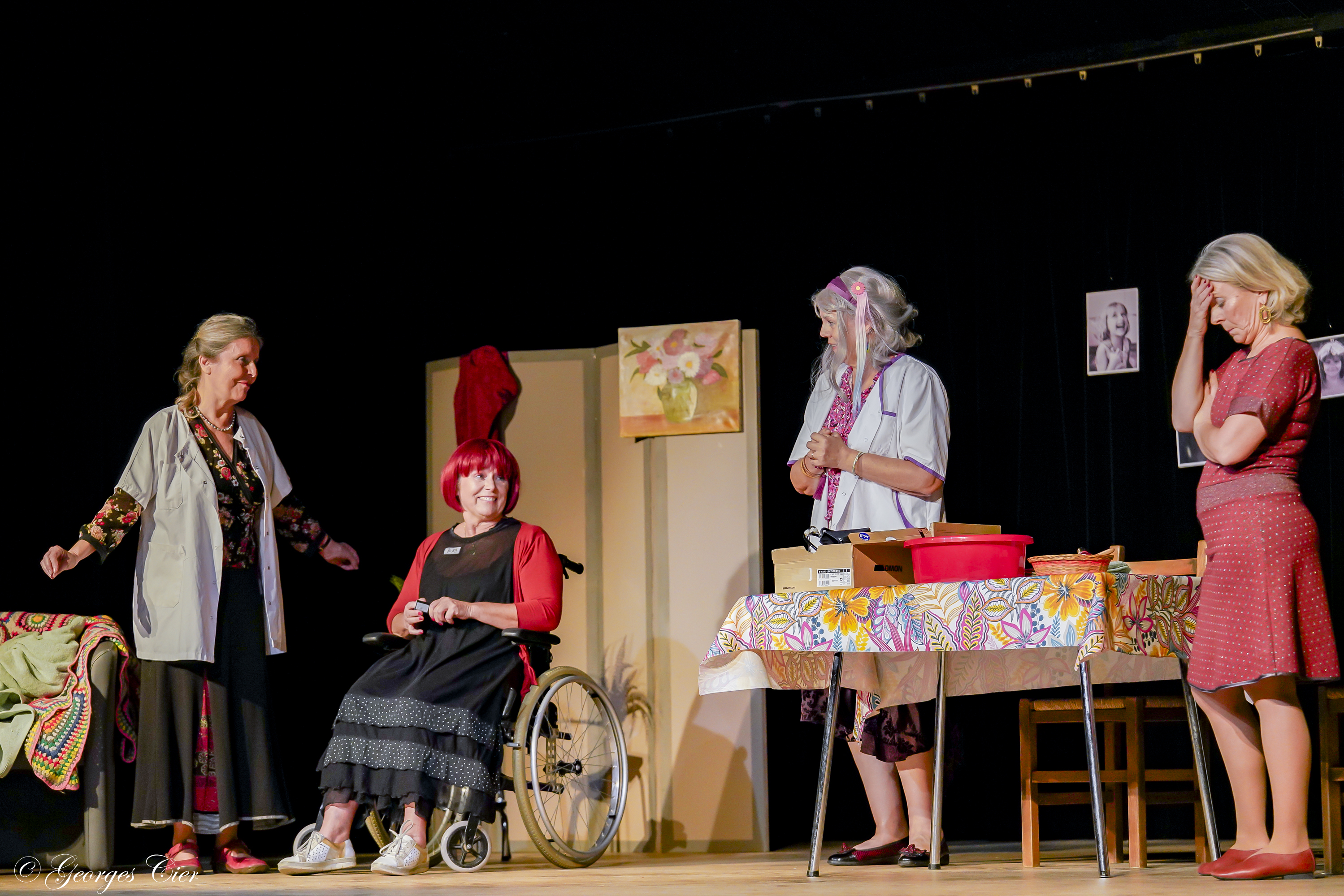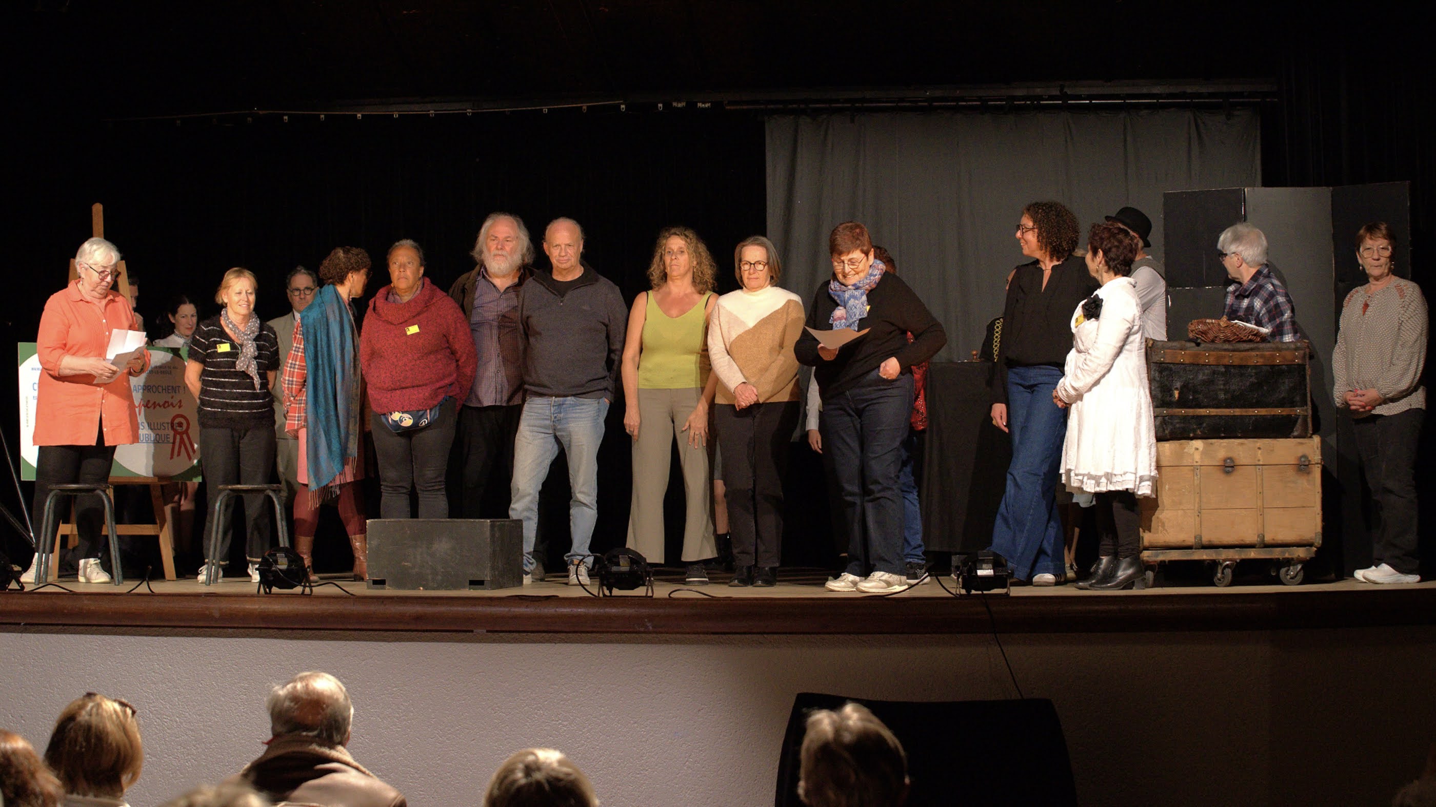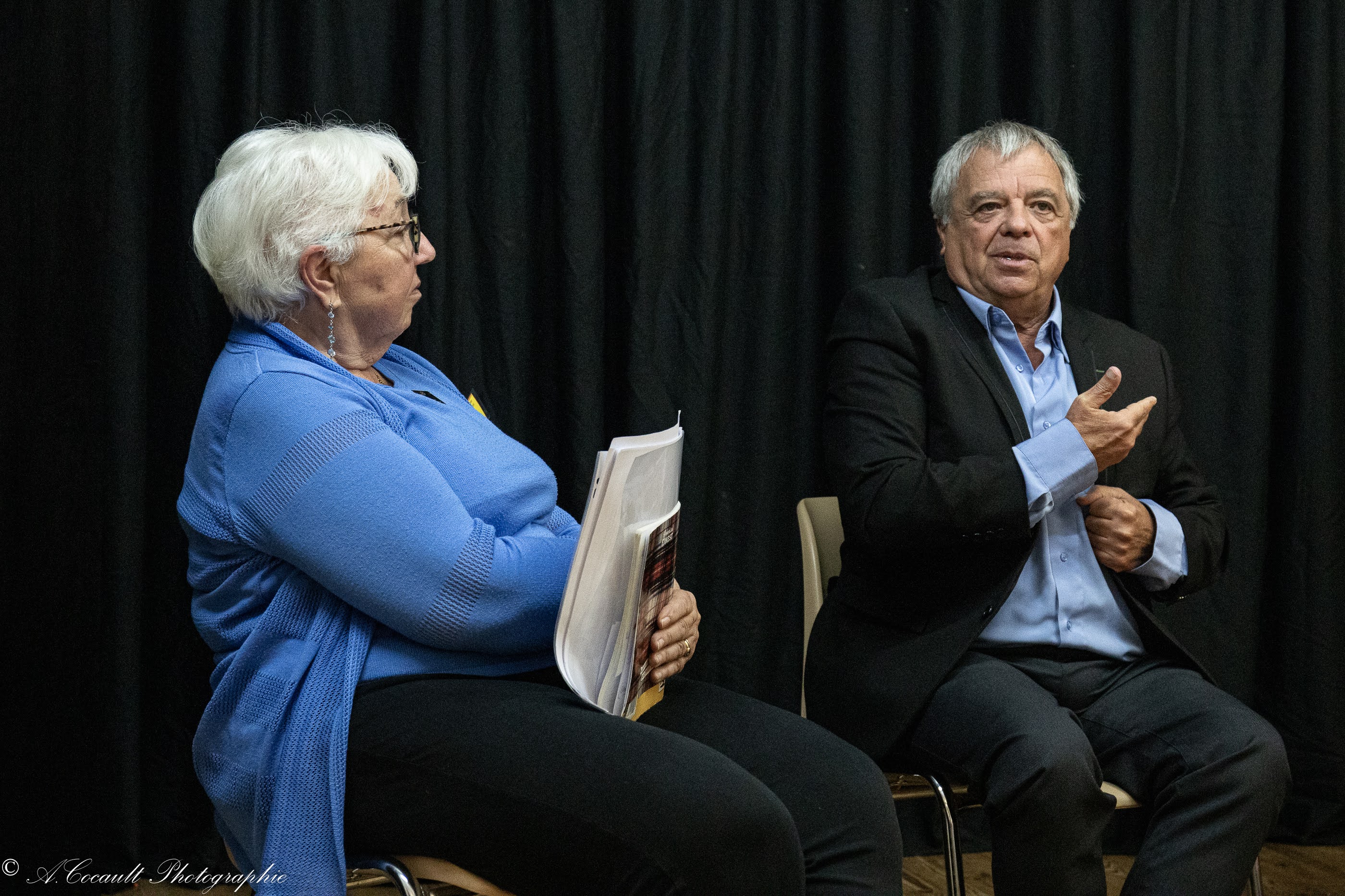 L’ouverture avait eu lieu le vendredi 7 novembre lors d’un apéritif dinatoire assorti de 2 intermèdes théâtraux et encadré par deux spectacles : « Recrash ta joie », un spectacle musical sur des textes d’auteurs et « Times Square » de la compagnie Clémentine. Déjà l’affluence record lors de cette soirée laissait augurer de la réussite du festival. Un festival gagnant grâce à une programmation de qualité, 150 comédiens, régisseurs et metteurs en scène et qui a attiré 1700 spectateurs, plus qu’en 2024. 5 jours intenses, 24 spectacles très variés dans les 2 salles d’En Solomiac et dans la salle des fêtes de Saint Pierre, des spectacles pour tous y compris le jeune public, du rire, de l’émotion, des surprises, de l’indignation, de la réflexion… Des spectacles primés dans plusieurs endroits dont « Le colonel Oiseau » tour d’argent à FESTHEA la semaine précédente, « Fausse note » primé plusieurs fois, des spectacles originaux : « Les passagers du petit jardin », une histoire sans paroles de la Compagnie normande « Scènes en boucle », des spectacles qui interpellent : » le circuit ordinaire » « L’installation de la peur », du burlesque : « L’Odyssée », » Inventaires » …Difficile de les citer tous ! Et tout cela agrémenté d’intermèdes par l’atelier théâtre de Mauvezin, de lectures de textes par des comédiens de la FNCTA et le groupe DIRELIRE.