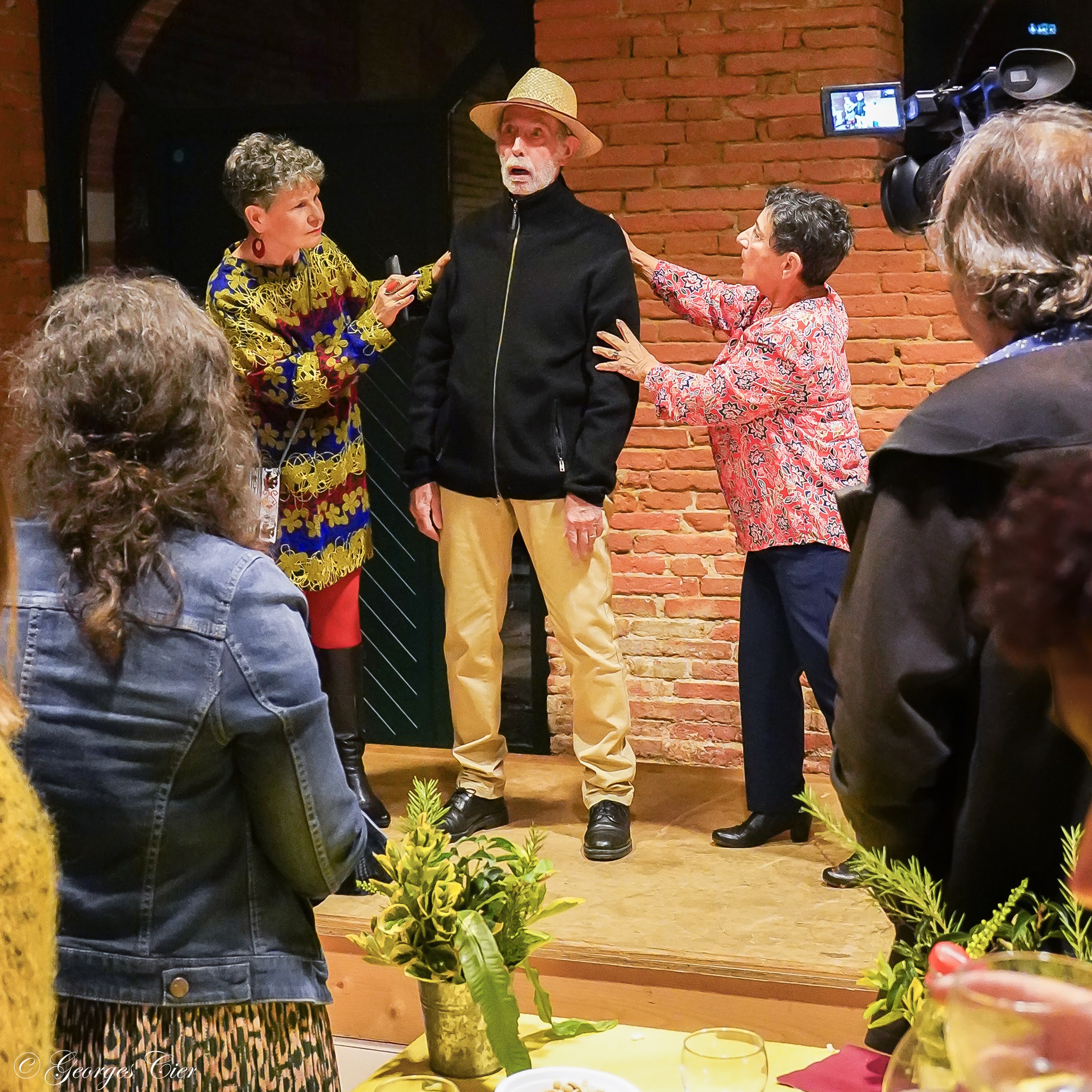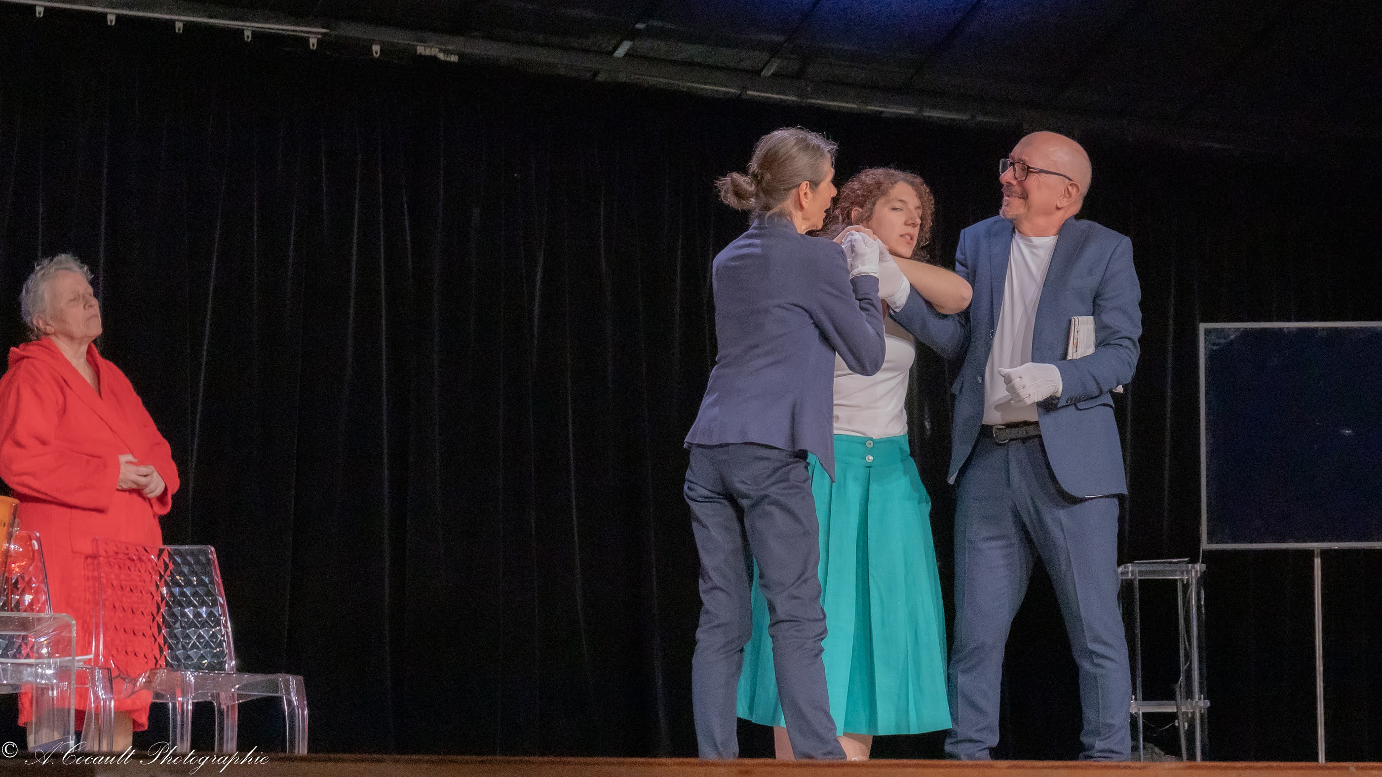 L’ouverture avait eu lieu le vendredi 7 novembre lors d’un apéritif dinatoire assorti de 2 intermèdes théâtraux et encadré par deux spectacles : « Recrash ta joie », un spectacle musical sur des textes d’auteurs et « Times Square » de la compagnie Clémentine. Déjà l’affluence record lors de cette soirée laissait augurer de la réussite du festival. Un festival gagnant grâce à une programmation de qualité, 150 comédiens, régisseurs et metteurs en scène et qui a attiré 1700 spectateurs, plus qu’en 2024. 5 jours intenses, 24 spectacles très variés dans les 2 salles d’En Solomiac et dans la salle des fêtes de Saint Pierre, des spectacles pour tous y compris le jeune public, du rire, de l’émotion, des surprises, de l’indignation, de la réflexion… Des spectacles primés dans plusieurs endroits dont « Le colonel Oiseau » tour d’argent à FESTHEA la semaine précédente, « Fausse note » primé plusieurs fois, des spectacles originaux : « Les passagers du petit jardin », une histoire sans paroles de la Compagnie normande « Scènes en boucle », des spectacles qui interpellent : » le circuit ordinaire » « L’installation de la peur », du burlesque : « L’Odyssée », » Inventaires » …Difficile de les citer tous ! Et tout cela agrémenté d’intermèdes par l’atelier théâtre de Mauvezin, de lectures de textes par des comédiens de la FNCTA et le groupe DIRELIRE.
